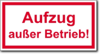 Hinweis für Aufzugsanlagen, weiß-rot, Aufzug außer Betrieb!