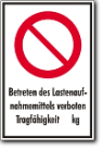 Hinweis für Aufzugsanlagen, Betreten des Lastenaufnahmemittels verboten - Tragfähigkeit ...kg | Schild zur Selbstbeschriftung