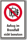 Hinweis Aufzugsanlagen, Aufzug im Brandfall nicht benutzen
