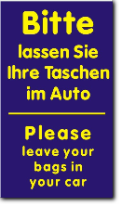 blau-weiß, einseitig Folienbeschriftung, Bitte lassen Sie Ihre Taschen im Auto - Please leave your bags in your car