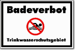 weiß-schwarz-rot, Badeverbot Trinkwasserschutzgebiet, Symbol: Verbot schwimmen