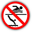 weiß-schwarz-rot-gelb, ACHTUNG Flaches Wasser Bitte nicht kopfüber reinspringen Lebensgefahr, Symbol: Warnzeichen "flaches Wasser"