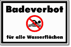 weiß-schwarz-rot, Badeverbot für alle Wasserflächen, Symbol: Verbot schwimmen