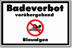 weiß-schwarz-rot, Badeverbot vorübergehend Blaualgen, Symbol: Verbot schwimmen
