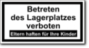 Betreten des Lagerplates verboten Eltern haften für Ihre Kinder; weiß-schw.