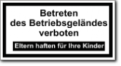 Betreten des Betriebsgeländes verboten Eltern haften für Ihre Kinder; weiß-schw.