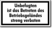 Unbefugten ist das Betreten des Betriebsgeländes streng verboten! weiß-schw.