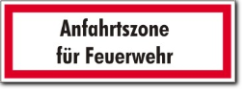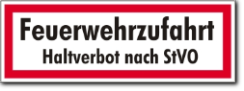 Verkehrzeichen nach StVO, Typ 1, Rand: rot, Text: schwarz; Feuerwehrzufahrt Haltverbot nach StVO