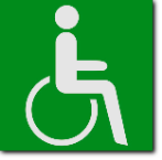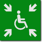 Fluchtweg, langnachl.,Rettungsweg - Notausgang für Rollstuhlfahrer links