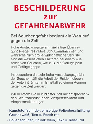 Wir liefern schnell, zuverlässig und preisgünstig.Sollte Ihr Schild nicht dabei sein, wir stellen es für Sie her.Weitere Produkte aus unserem Lieferprogramm:Masken - Schutzanzüge - Absperrmaterial
