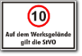 Auf dem Werksgelände gilt die StVO, 10 km - weiß-schw.-rot