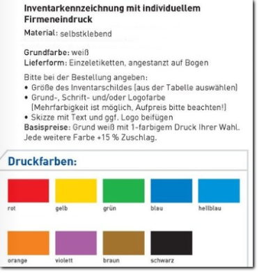 Inventarschilder, 1 Bogen = 20 Nutzen, Inventar-Nr.: