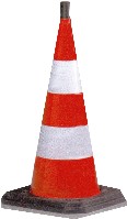 Leitkegel - extrem stand- und rutschfest - optimal stapelbar - das Kippmoment liegt bei 70° - durch auf der Unterseite angebrachte Noppen kein Ansaugen keine Beschädigung der Folie - Kegelkörper besteht aus starkem PE-Material - Fußplatte aus Recycling- oder Gummimaterial - einfaches Recycling durch Trennen der Materialien (Kegelkörper/Fußplatte)
