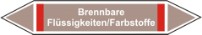 braun-weiß-rot, Folie einzeln, selbstklebend, rechts und links mit Pfeilspitze ausgerüstet | 12,6x2,6 cm | Brennbare Flüssigkeiten/Feststoffe