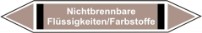 braun-weiß-schw., Folie einzeln, selbstklebend, rechts und links mit Pfeilspitze ausgerüstet | 12,6x2,6 cm | Nichtbrennbare Flüssigkeiten/Feststoffe