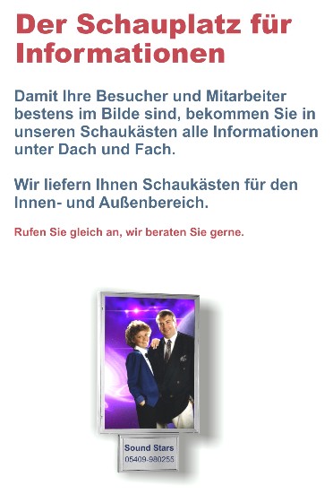 Auf Anfrage:Schaukästen, blanco (ohne Aufdruck/Inhalt)Abbildung dient nur zur Illustration