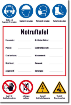 Notruf-Tafel für Baustellen zur Selbstbeschriftung