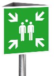 Fluchtweg, Sammelstelle Dreieckskonstruktion, 40x40cm, Alu retroreflektierend