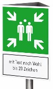 Fluchtweg, Sammelstelle Dreieckskonstruktion, 40x60cm, Alu retroreflektierend, Bitte geben Sie bei der Bestellung Ihren Text, max. 20 Zeichen mit an.