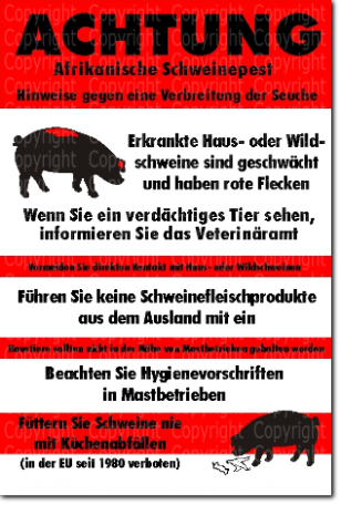 KSt., weiß-rot,ACHTUNG Afrikanische Schweinepest Kadaver-Sammelpunkt