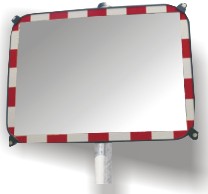 -aus gleichmäßigem gewölbten SEKURIT-Sicherheitsglas - der Spiegel ist schlag- und stoßfest und bietet Schutz vor Verletzungen - voll retroreflektierender rot/weißer Blickfangrand - kunststoffbeschichtete Halterung - die Schelle hat einen Durchmesser von 7,6 cm (auf Wunsch auch andere Größen lieferbar, gegen Aufpreis)