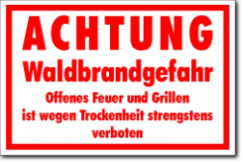 KSt., weiß-rot, ACHTUNG Waldbrandgefahr Offenes Feuer und Grillen ist wegen Trockenheit strengstens verboten