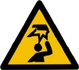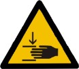 Folie, ca. 5cm SL, gelb-schwarz, Warnzeichen Handverletzung