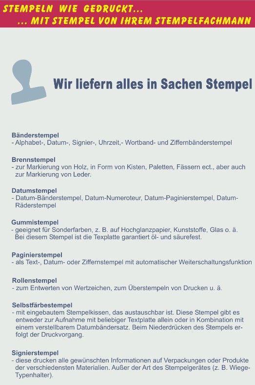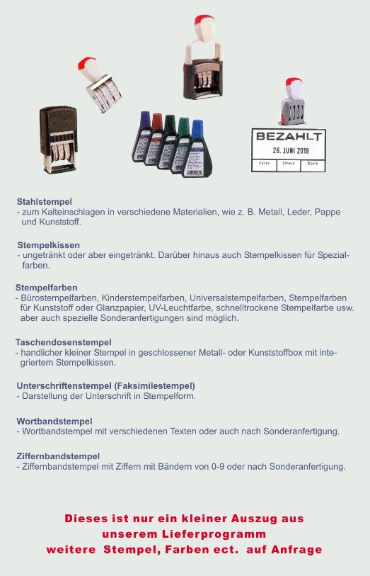 Bitte beachten Sie deshalb auf jeder Stempelverpackung auf eindeutige Verbotszeichen, da durch das Nachtränken die Gewährleistung eines Stempels nicht mehr gegeben ist.