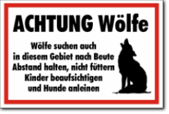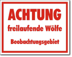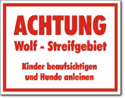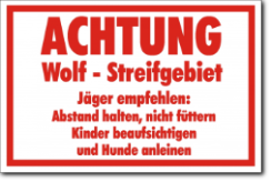 KSt., weiß-rot, ACHTUNG Wolf - Streifgebiet Jäger empfehlen: Abstand halten, nicht füttern Kinder beaufsichtigen und Hunde anleinen